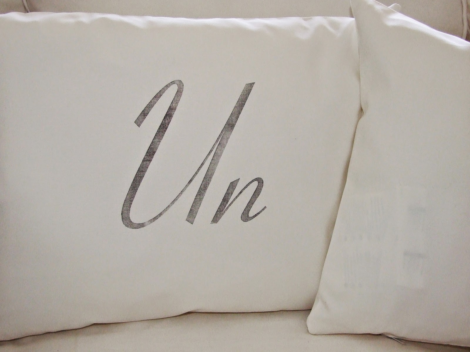 Poszewka uszyta z grubej bawełny w kolorze ecru. Napis wykonany za pomocą transferu.